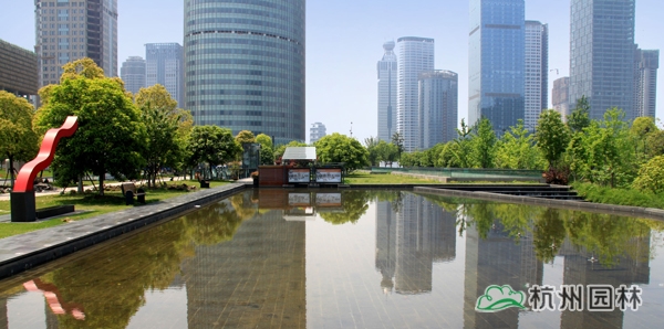 该工程东临新业路,西至解放东路,北倚杭州市市民中心,工程占地 5.1公顷,内容包括地面花岗岩及木地板铺装,台阶花岗岩铺装,台阶水池、两翼水池铺装,种植土更换,乔木种植,草皮铺种等。工程将现代科技和园林艺术完美交融,是杭州走向钱塘江时代的创新力作。