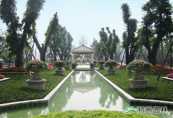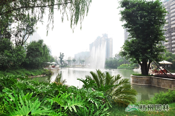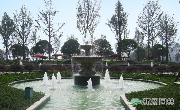 该工程以豪阔手笔打造,近10000平方米的皇家叠水园林与逾8000平方米壮阔双湖倾城碧波胜景,游走其间,各式园林小品穿插点缀其中,园中大量运用喷泉、雕塑、花坛、树丛等精心布置景观小品,展现令人赞叹的皇家美景,湖岸旁精心布置的叠水景观、亲水平台、喷水雕塑、亲水栈道之间,以花卉、景观树完美衔接,景观错落有致,塑造出丰富的层次,打造出步移景异的极致景观效果。