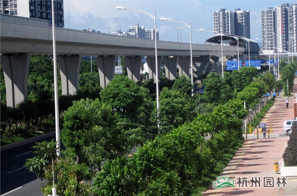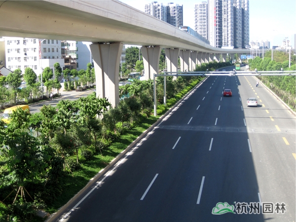 该工程位于国道205深圳段龙岗区地铁三号线爱联地铁站至坪地与惠州市交界处,施工内容包括绿化种植、绿化喷灌与管道安装等。植物配置遵循适地适树的原则,并充分考虑与城市风格的吻合,兼顾多样性和季节性,通过多层次、多品种的搭配,营造出处处有绿叶、无处不飞花,一路风景变化万千的城市景观带。