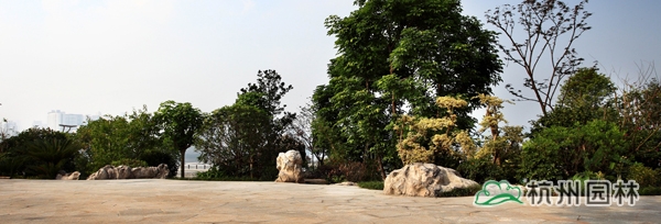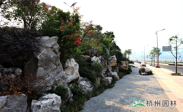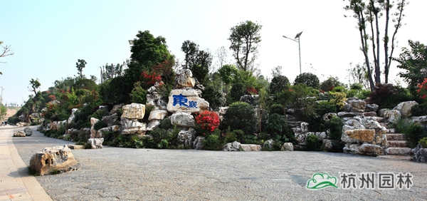 该工程位于泸州城东长江东岸,面积近七公顷。其中,“东岩夜月”是泸州老八景之一,景观资源丰富。工程设计范围为国窖大桥东岸桥头节点,总面积近5万平方米。设计理念以生态园林为出发点,以恢复东岩峥嵘峭壁,修复道侧山体绿化,保护、改善、美化、提升区域生态环境为目标,本着以人为本、重视公众参与的原则,充分利用现有的丰富自然资源及人文环境,规划出一个既能满足市民休闲娱乐,又能体现东岩公园特色的景观场所。