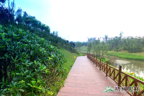 泸州市玉带河湿地公园(一期)工程位于四川省泸州市龙马潭区,施工内容包括完善公园一期120余亩范围内园林道路、植物种植、拱桥、曲桥、水上园路、景观亭等基础设施建设,玉带河片区截污干管建设等。工程于2013年8月开工,2014年5月竣工,历时9个月。该工程荣获“2014年度浙江省优秀园林绿化工程银奖”。