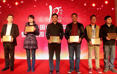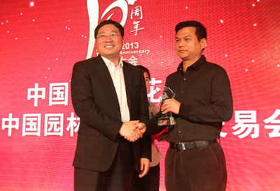 大会揭晓并颁发了“突出贡献奖”、“贡献奖”、“最佳合作伙伴奖”、“2013年优秀参展奖”、“2013年产品金奖”等多个奖项,以此表彰一批多年来为中国(萧山)花木节的成功举办做出积极贡献的个人和单位。其中,杭州市园林绿化工程有限公司荣获“最佳合作伙伴奖”、“2013年优秀参展奖”,参展的产品“红宝石”紫薇和“火炼金丹”桂花荣获“2013年优秀产品奖”,总经理张炎良上台领取了奖牌。