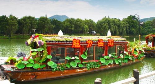 艺术节期间,首次在西湖湖面上配置的6艘荷花花船,极大地提高了荷花节的观赏性和趣味性,成为西湖中一道流动的荷花美景。其中,由乐动平台_乐动(中国)一站式服务平台 设计制作的“魅力西湖”荷花游船,将插花技艺与园林布景手法有机结合,用康乃馨、勿忘我、太阳花等与荷花组景,既突显了“主角”荷花的秀丽、典雅,又使整艘船的色彩明艳丰富,将热闹的节日氛围巧妙烘托。