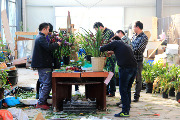 员工组盆现场:一盆盆精美的花卉从他们手中诞生