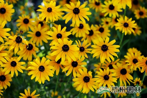 黑心金光菊,原产美国东部地区。株高60-100cm,枝叶粗糙,全株被毛。近根出叶,下部叶长卵圆形、长圆形或匙形,叶缘有细锯齿;上部叶互生,匙形或长圆披针形,叶缘有疏齿,两面被毛。与金光菊同属异种,花心凸起,花心颜色为黑紫色,这是与金光菊间最直观的区分。喜阳光充足,性强健,耐干旱,极耐寒,不择土壤,可作花境材料,也可在林缘、隙地或房前栽植或成片种植。