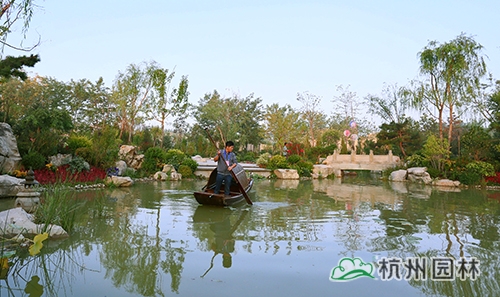 蜿蜒的溪流与美丽的花境,演绎一出春秋战国时期西施浣纱的美丽传说。