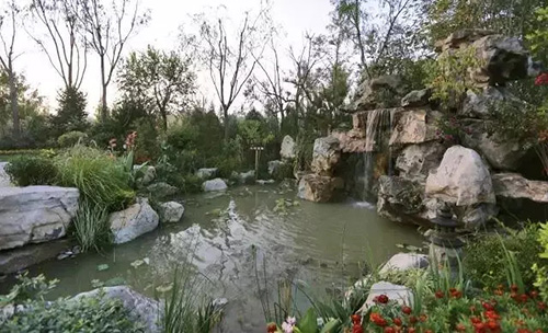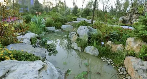 蜿蜒的溪流与美丽的花境,演绎一出春秋战国时期西施浣纱的美丽传说。