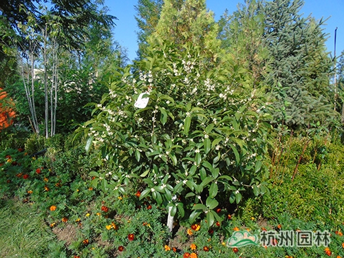 花博会开放时间是9月份,为配合开园需要,根据不同植物的开花特性及要求,采取相应的措施,确保植物的最佳观赏效果。桂花是杭州市市花,是集绿化、美化、香化于一体的优良园林树种,一般在仲秋时节绽放,“浙江园”的桂花全部精选自杭州画境种业有限公司,提前运送至银川之后,利用当地的低温环境诱使其完成花芽分化,在开园时营造了桂花满树、满园飘香的氛围。八仙花又名绣球,花大色美,是长江流域著名观赏植物,在明、清时代建造的江南园林中就栽有八仙花。特别是八仙花‘无尽夏’具有多次开花的特点,项目人员通过修剪、培育,促进其花芽的再次分化,使展园内的八仙花处于生长繁茂、花团锦簇的良好状态。此外,还结合公司“一种红枫快速成景方法”等专利,运用摘叶等形式促进槭树科植物萌发新叶,为九博会的开幕增添新的色彩。