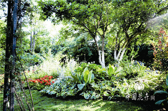 高大的桂花树为花境提供了极佳的林荫环境。