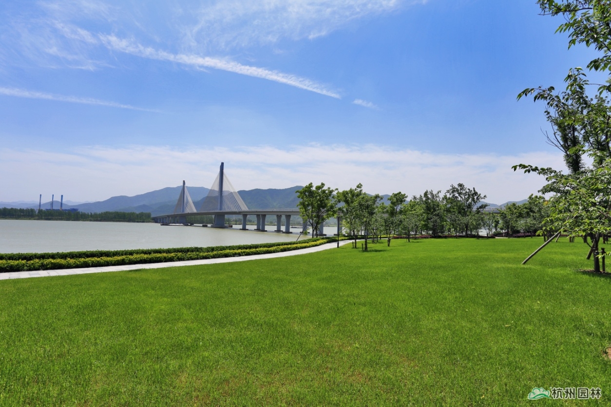 三江两岸整治-江滨西大道景观工程(一期)工程:项目位于杭州市富阳区江滨西大道东吴公园-鹿山新区5号路,通过运动风尚区、活力休闲区、文化展示区三个区块相结合,原来散点式的公园和绿地通过绿道有机串联在一起,实现了点、线、面的综合贯穿,就像展开了一幅长长的山水画卷,营造出集自然生态、文化意蕴于一体的富阳水岸风采。春的旖旎、夏的葱郁、秋的多彩、冬的静谧,一幅四季美景图,为“风烟俱净,天山共色”的富春江,增添了许多清新和活力,成为富阳城市园林绿化的一个标杆工程。