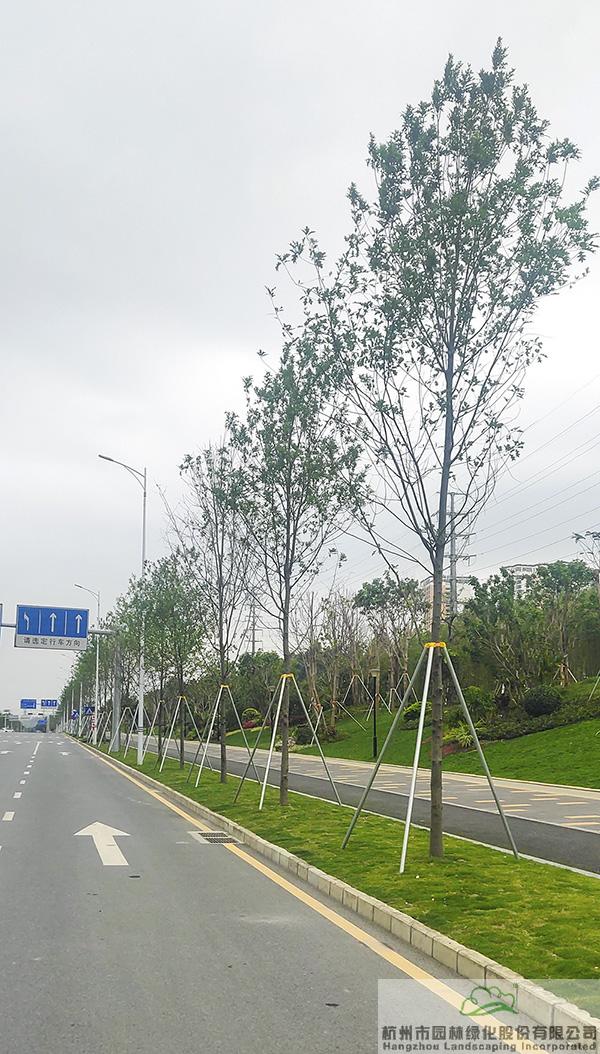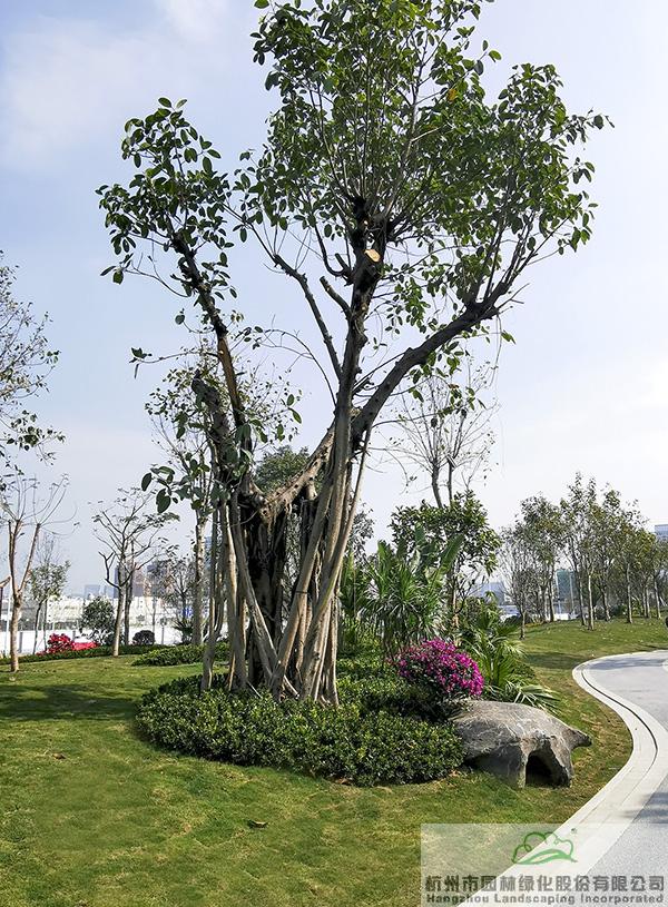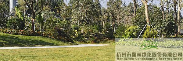 地被植物和小灌木充实园林的下层空间,往往起到“镶边”的效果,如果种植不好,很容易使底部出现裸露的土壤,景观效果大打折扣。而该项目在现场放样之后,先对地形进行处理,形成一定的坡度,然后在地被植物或小灌木种植时,上面坡度高的地方平种,随着逐渐向下方边缘靠近,植物种植向下方倾斜,逐步过渡,从上到下形成弧线,将土壤遮盖。“这种处理手法,不但使下层空间看着自然美观,而且避免了地面出现裸露情况。”叶伟华的言语中,不经意间流露的,是杭园人对细节的极致追求。