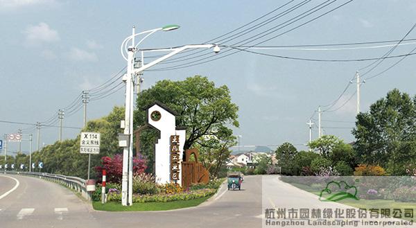 结合南马镇自然的山水格局和生态环境现状,以道路为骨架,连接山体、水系和各村庄入口节点,将南马镇人文历史融入其中,构成一条隽秀古朴的山水长廊。设计时,梳理现状道侧植物,达到显山露水之美。同时采用婺派传统景墙结合红木、钢板等现代元素进行再创作,突出文化内涵。