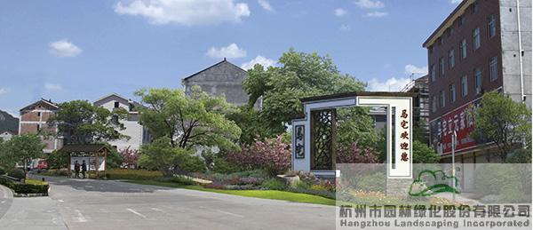 充分利用原有乡土田野景观,合理布置文化景观节点,将画水镇打造成一派秀丽、生态的田园风光。整体景观风格力求自然、生态,并保持建筑、植物、景观小品的和谐与统一。设计时,提炼许宅花灯制作、红木等传统元素,与景墙、小品相融合,进行演绎与表现。村镇入口标识采用传统东阳民居建筑形式进行演绎,展现淳朴风格。
