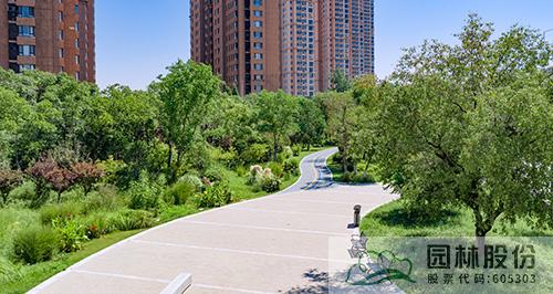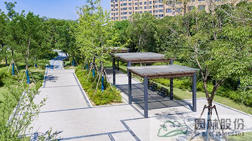 项目毗邻多处居住小区,考虑周边居民需求,在观澜别院、中茵龙湖国际、维维龙湖湾南侧等绿地,选用小游园的绿化形式。在绿地中设置廊架广场、杉木桩广场、树池广场等景观节点,贯穿绿道园路,为周边居民提供休息娱乐的活动空间。