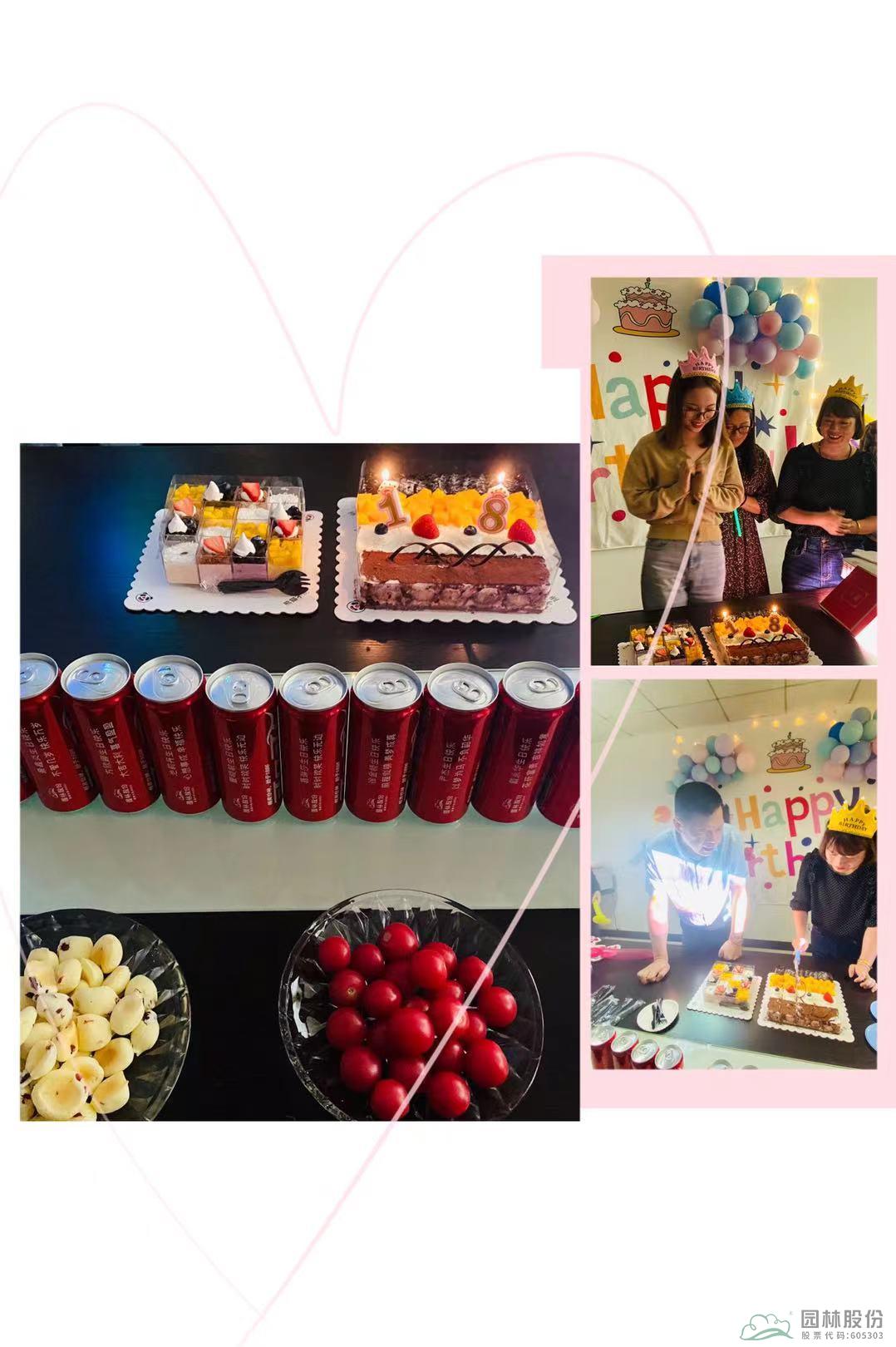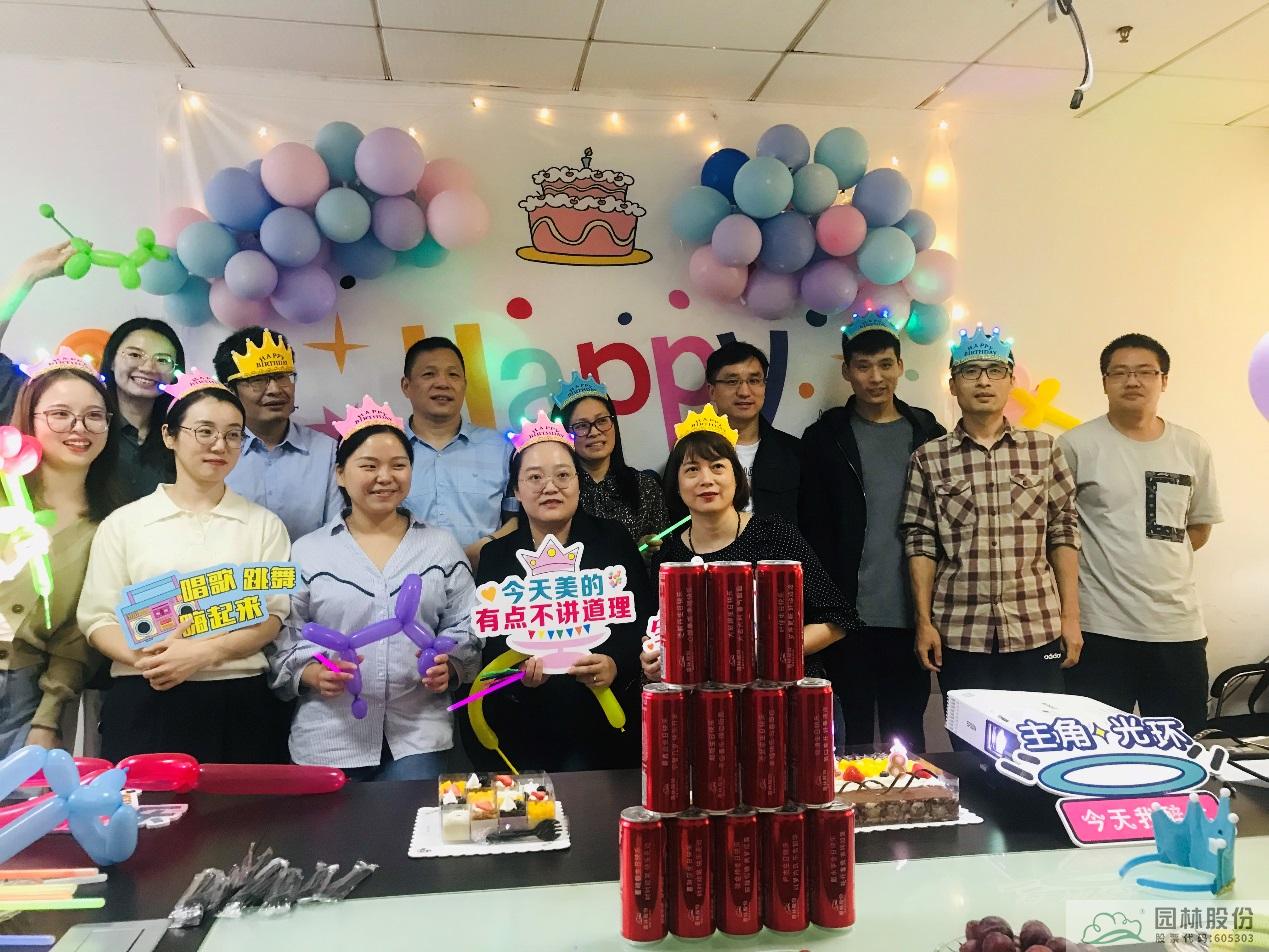 10月15日,园林股份10月员工生日会如约而至,副总裁兼董事会秘书王冰、工会主席吴忆明代表公司给10月的寿星们送上了深深的祝福。