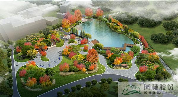 在公园入口设计标识景墙,起一定指示作用的同时又能形成亮点,增重彩叶树种及开花树种,下层以麦冬、菖蒲等植物搭配景观小品组成植物组团,留出一定的草坪空间,形成开合有致的植物空间,增加景观的美观度。