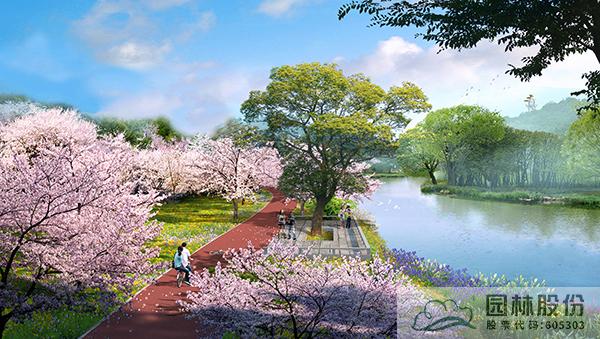 设计增加沿溪绿道,主要树种采用早樱类(迎春樱)、染井吉野等樱花品种。增加色叶植物与花灌木,下层植被采用绣线菊、蝴蝶花、石蒜、紫花地丁等,丰富植物层次,营造开合有致的空间秩序。