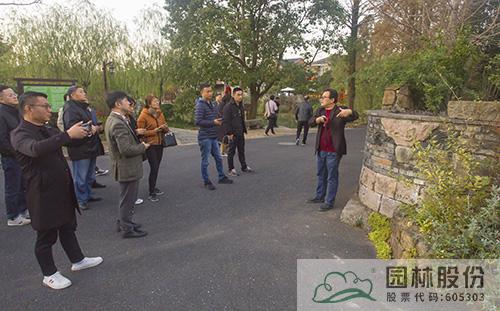 在园林股份副总裁李寿仁的带领下,大家观摩了公司承建的径山镇2018年美丽乡村建设项目之小古城村。作为“两众思想”的实践地,小古城村的美丽乡村建设融入“两众”文化,从村口的“众人的事情由众人商量”景墙,到“香樟下议事”,到关于乡村民主协商机制的发展历史与经典语录,让人们深刻感受到小村日新月异变化的内在原因。而“墙”上的文章更加精彩,家家户户的景墙用旧青砖、旧石磨等老材料拼成各种图案,并通过对房屋建筑外立面的改造,使建筑与景墙遥相呼应,每家每户各有特色。此外,还通过茶田、竹林等景观提升,将美丽乡村建设与“三产”融合,帮助农民增产增收,助力乡村振兴,促进共同富裕。