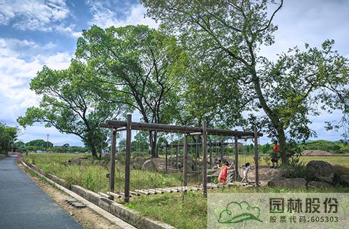以彩色稻、彩色农作物围绕村庄营造烂漫的七彩农田,区域承载儿童田园游乐、研学教育、农事体验、果蔬采摘、休闲观光等功能为一体,打造寓教于乐的自然育乐新田园。结合场地内现有的水塘和林地,打造集林、田、水不同自然层次、区别于城市钢筋混凝土的乡田无动力童趣乐园。