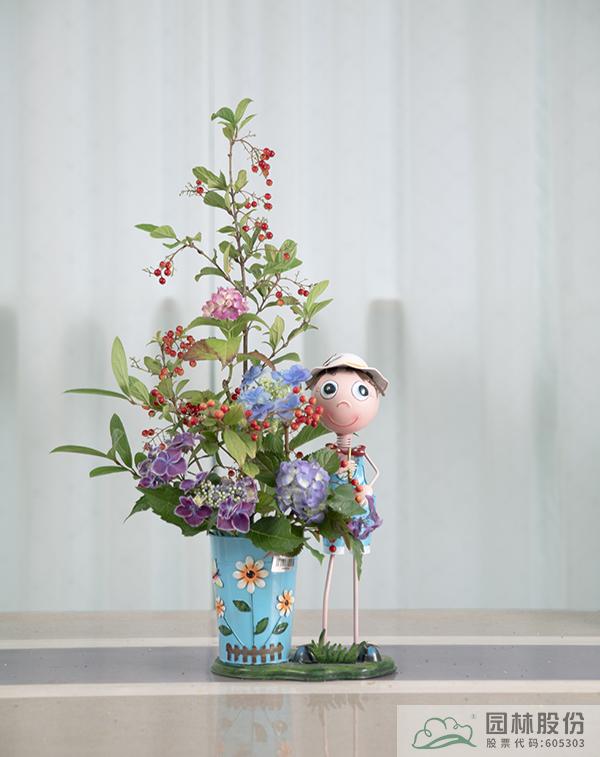 在风景如画的画境·青山湖花园中心,以园林股份自主培育的绣球为“主角”,老师们用灵动的双手,无限的创意,制作出一幅幅新颖独特的绣球花艺作品。所有花材均取自青山湖花园中心,不仅仅有“当家花旦”绣球,还有企业自主培育的黄金枸骨、金橡树叶冬青、花菖蒲等多个待申请新产品。