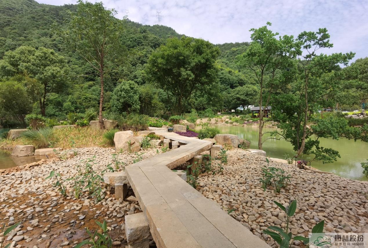 对入口处白鹤潭进行了整体改造,小石桥、石板路穿潭而过(图7),岸边增加亭廊等休憩场所(图8,图9),岸边的花草树木点缀其间、相映成趣(图10),南面湖区进行了防渗补漏,保证潭水充盈不干涸(图11)。进入景区的沿途道路进行了景观绿化改造,于百竹园段围起了竹篱笆,竹林边设置了花镜,风景更为亮丽。