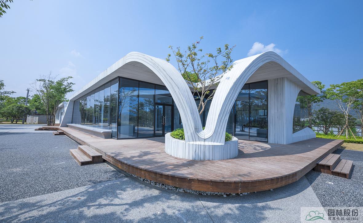 项目利用中心湖蜿蜒的湖湾和众多洼地,引水入园,形成沿湖而生的各个景点。湖区背山面水,视线开阔,能远望城市。沿线众多湖湾处,设置各色景观桥连通内塘与外湖的生态通道,同时景观建筑依水而建,与周边景色相映成趣。