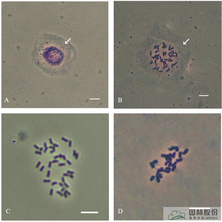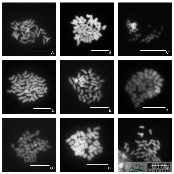 通过绣球属植物的细胞遗传学研究,建立染色体形态良好、分裂相内染色体分散且无细胞质背景的绣球根尖高质量染色体制片技术,完善中期染色体45S rDNA和5S rDNA荧光原位杂交( FISH) 技术体系,可以揭示其染色体组成及其特征,研究其系统进化关系,为绣球属杂交育种的亲本选配提供依据,从而指导绣球属植物的杂交育种,并为深入开展绣球属植物的分子细胞遗传学研究奠定基础。