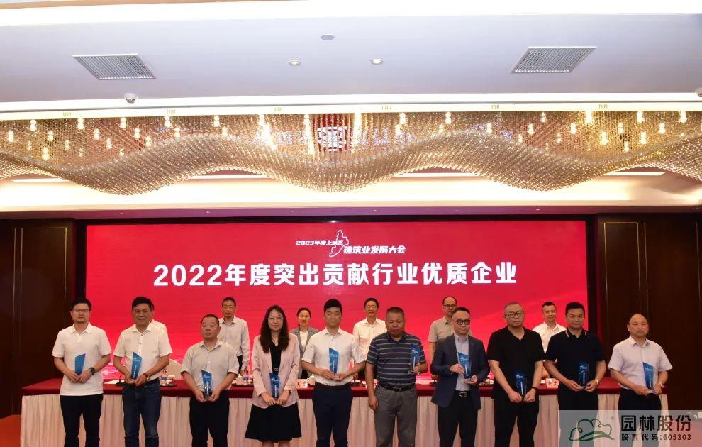 会议表彰了2022年度上城区建筑业杰出贡献行业领军企业、突出贡献行业优质企业、创新贡献成长潜质企业,并公布了上城区相关的行业惠企措施等内容。园林股份喜获“突出贡献行业优质企业”奖。