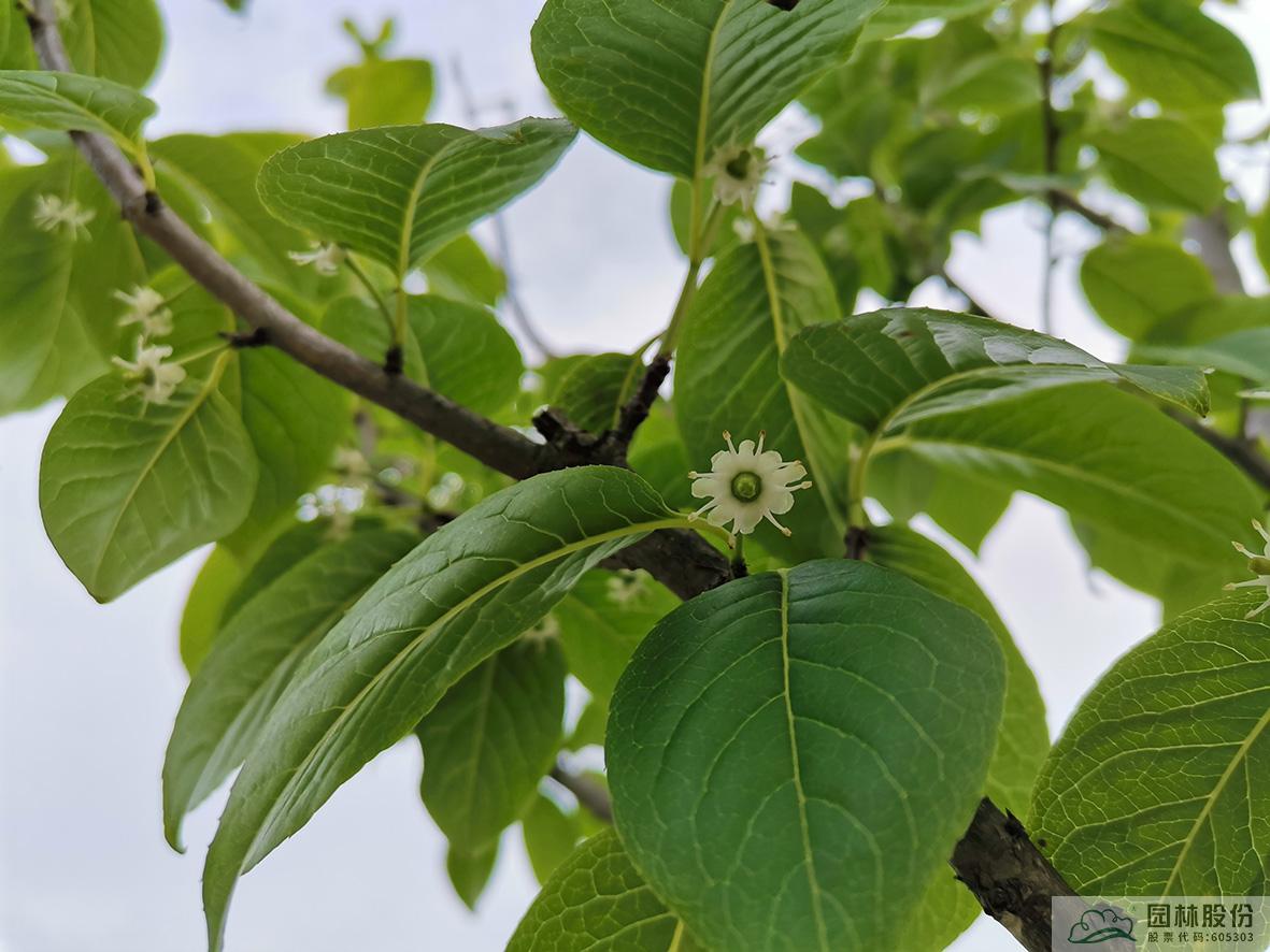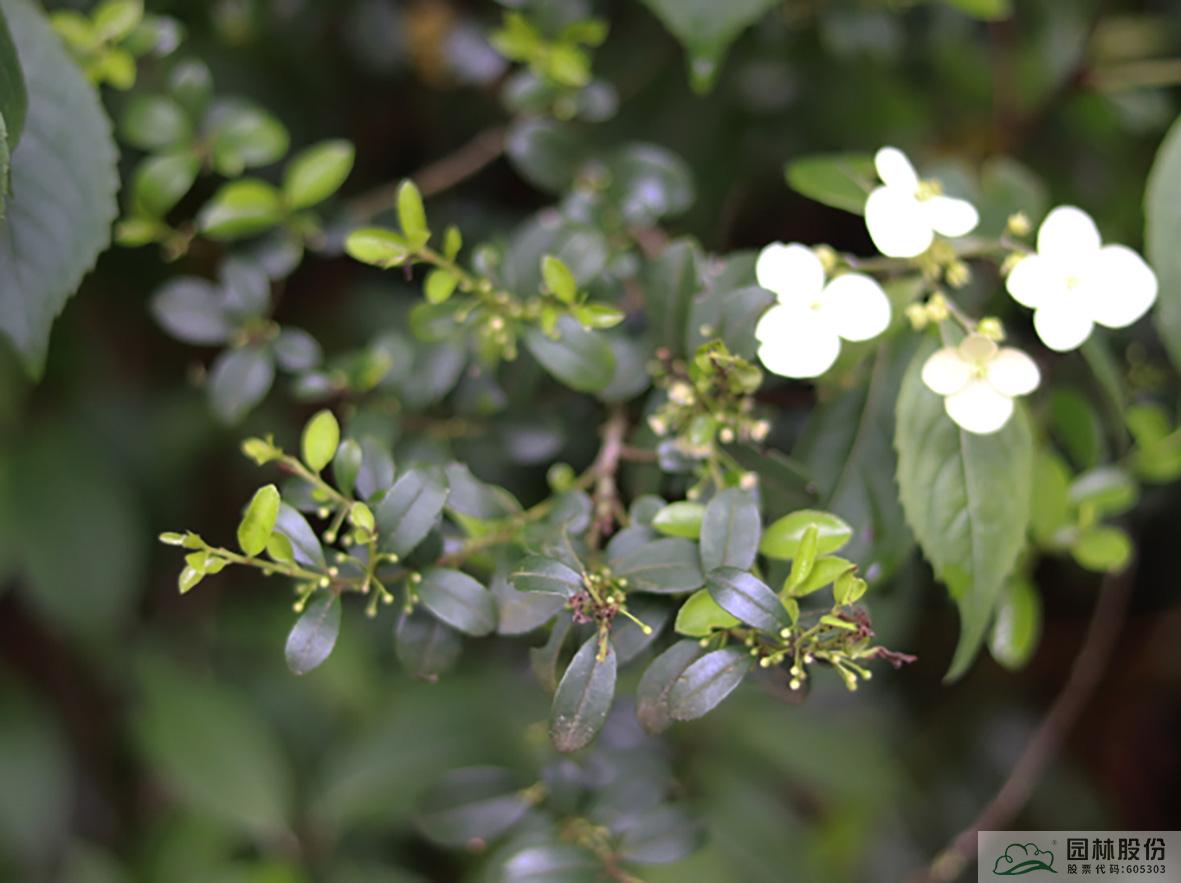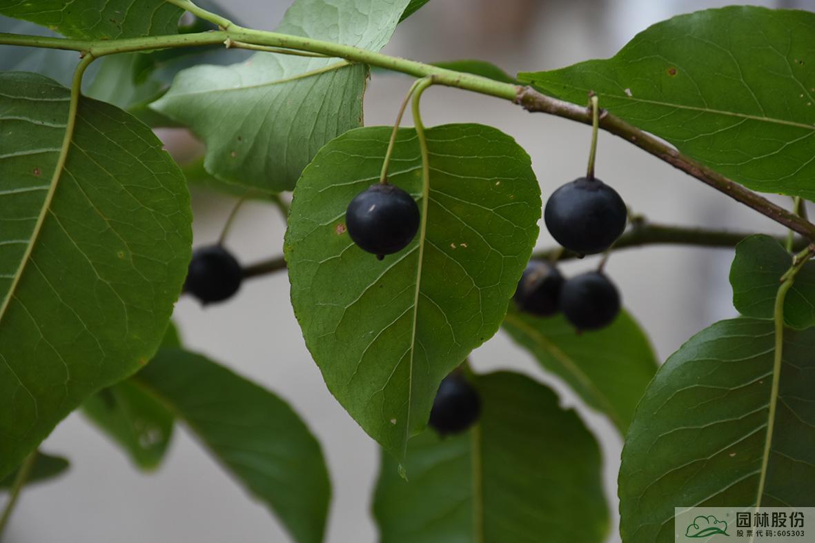 大果冬青:落叶乔木,树体高大,分枝点高。叶片纸质至坚纸质,卵形或卵状椭圆形。花白色且具淡淡的香气。果成熟时黑色,球形。四季景观分明,随时间和空间变化呈现不同的姿态,色彩和意境,常在园林景观中孤植。