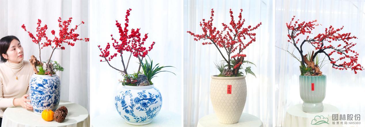 北美冬青晶莹红火、硕果累累的果子,充满了喜庆的氛围,每年都有很多人选择它作为年宵花讨好彩头,是一份超长待机的美好祝愿。其花语是:生命、富贵,寓意“红红火火,兴旺昌盛”。