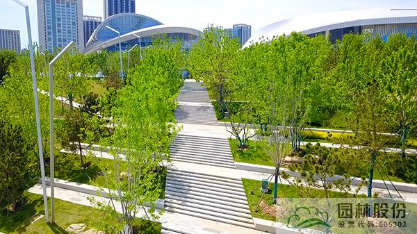 为确保景观效果,全部选择长势良好、健壮的树苗,苗木根系发达、生长状态良好,无虫害;种植土保证足够厚度,土质疏松、肥沃;栽植前合理修剪,乔木在栽植过程中根据树木大小合理增减通气孔数量,雨后还可以通过该通气孔及时排水,有效保证苗木成活。