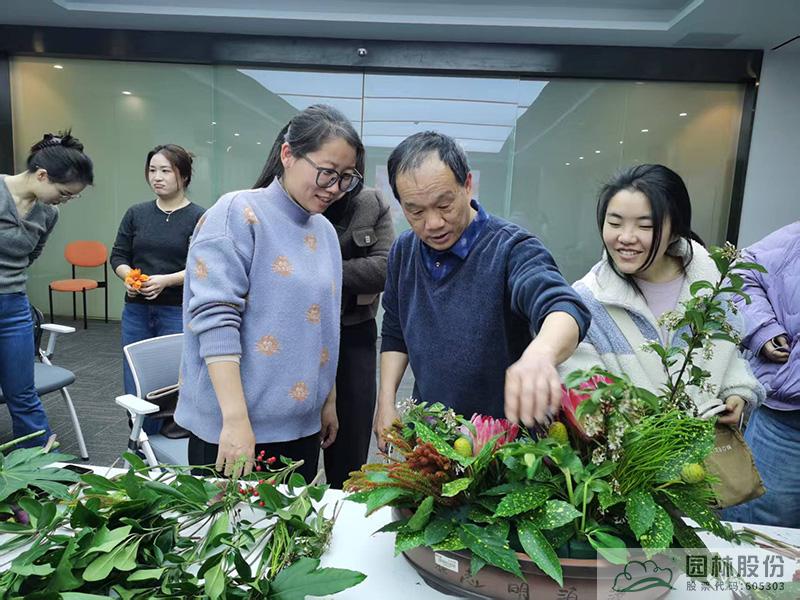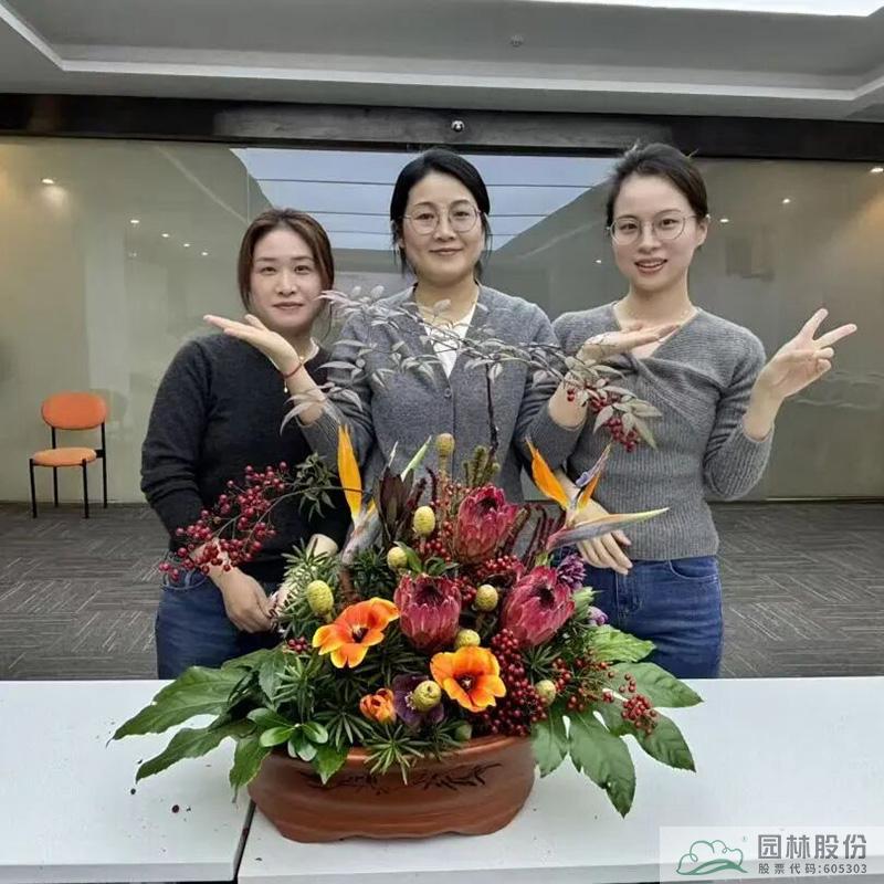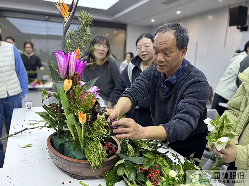 随后,一场别开生面的插花艺术课堂拉开帷幕。江志清大师以生动的语言,从插花艺术的基础理论、色彩搭配技巧到花材处理方法等,娓娓道来。现场的女性员工们认真聆听,不时记录要点,沉浸在花艺的美学世界里。理论学习之后,大家以六人为一组,在江志清大师的指导下,动手进行插花创作。剪刀轻剪,花枝舒展,巧手翻飞间,一朵朵鲜花被赋予了新的生命。大家自由发挥创意,将普通的花材变成一件件独具匠心的花艺作品。活动现场花香四溢,欢声笑语不断,每一位女性都在创作中找到了属于自己的那份宁静与自信,更在团队协作中增进了彼此的沟通与默契。