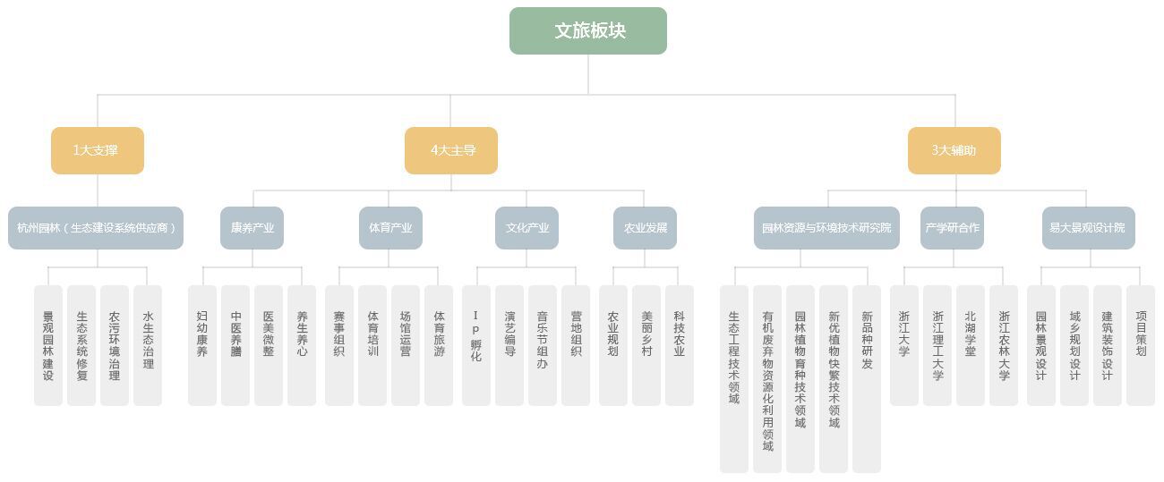 智慧文旅板块(简称杭园文旅),秉承 “以生态促旅游,以旅游促发展”发展理想,紧随美丽中国、乡村振兴战略的指引,以新江南园林为核心特色,围绕“宜居、宜业、宜游、宜养”核心理念,确立旅游景区、消费产业聚集区与新型城镇化发展区,三区合一发展思路,文化、农业、旅游三产融合,新模式、新业态、新路径三位一体的建设模式。锻造以乡村振兴为支撑,以现代化农业为基础,打造一二三产融合、资源禀赋的集康养、教育、体育产业为主导,文旅+农旅为辅助的文旅体系。